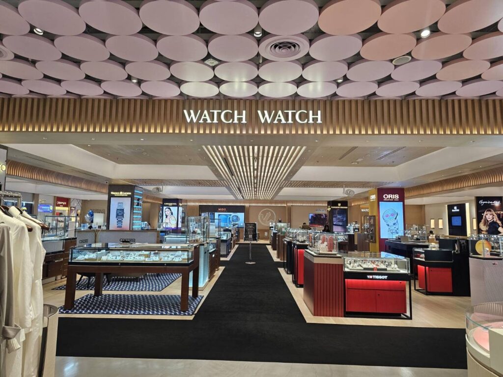 エスカレーターを上がると奥の方に高級時計ブランドがずらり。