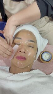 顔のカッサではフェイスラインがキュッと引き締まった感覚。