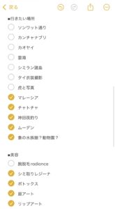 本帰国前だからというわけではなく、私はタイ生活中かなり色んな場所(特に国内)へ行っていたタイプなのでここのリストアップは少なめでしたが、それでも予定を立てるのが一番大変な項目でした。