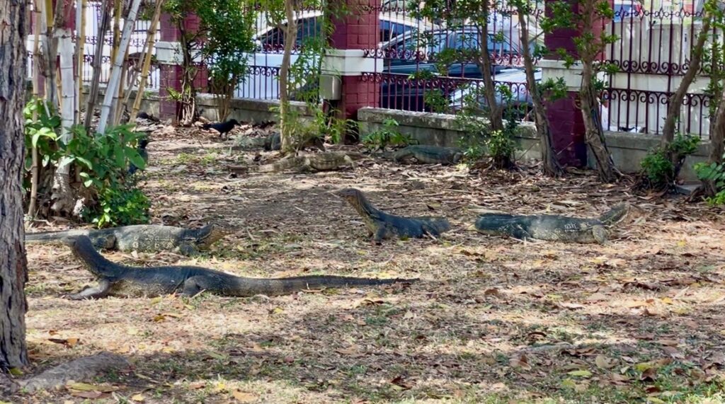 ミズオオトカゲの大群を観察し